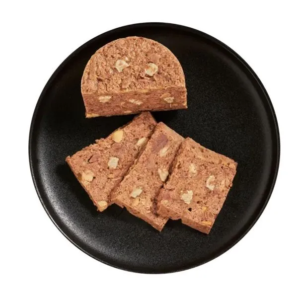 Ingrediente: pui, ficat, inimă, stomac (42%); supă de pui și căprioară (28,8%); căprioară, plămâni, inimă, ficat (14%); file de pui (14%); minerale (0,5%); coji de ouă, uscate (0,5%); ulei de somon (0,2%)
