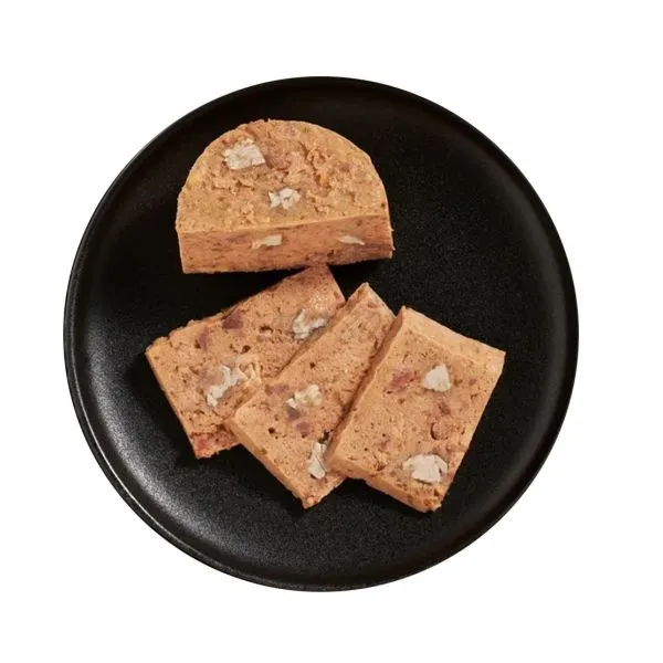 Ingrediente: somon (29%); ficat de pui, inimă, piept (28%); somon și bulion de pui (27,8%); file de pui (14%); minerale (0,5%); coji de ouă, uscate (0,5%); ulei de somon (0,2%)