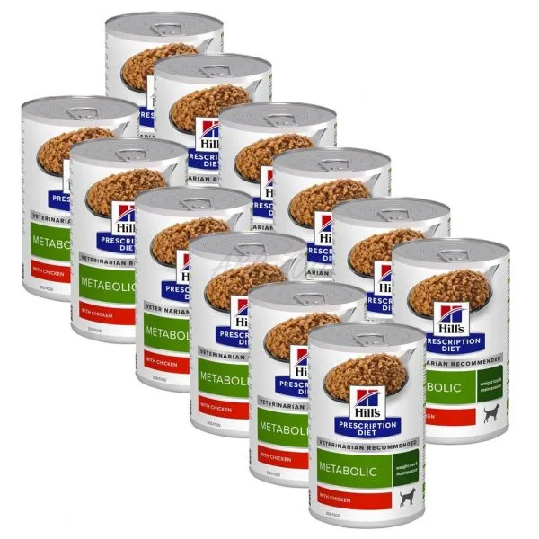 Nutriționiștii și medicii veterinari de la Hill's au formulat Prescription Diet Metabolic, o nutriție clinică special formulată pentru a ajuta câinii să piardă din greutate și să își mențină greutatea după slăbire. Funcționează în mod natural cu necesarul unic de energie al câinilor pentru o pierdere în greutate ușoară și eficientă. Această hrană stimulează abilitatea naturală a câinilor de a arde grăsimile și oferă energie pentru o joacă activă. Amestecul său unic de fibre ajută la menținerea senzației de sațietate a câinilor. Mai mult, 96% dintre câini au pierdut din greutate acasă în 2 luni atunci când au fost hrăniți cu hrana Metabolic.* Această hrană umedă este realizată cu pui și are un gust irezistibil pe care câinii îl adoră.