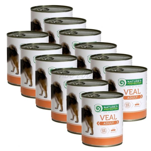 Nature's Protection este hrană conservată pentru câini adulţi, cu carne de viţel într-un bulion delicios.