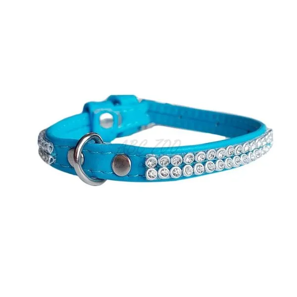 Zgardă din piele lucioasă cu pietre de cristal, culoare albastru deschis. Mai multe detalii
