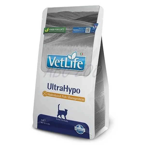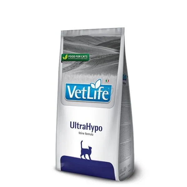 Farmina Vet Life UltraHypo este o dietă completă pentru pisici care suferă de reacții adverse la produsele alimentare (alergii și/sau intoleranțe). Acesta poate fi folosit ca instrument de diagnosticare (dieta de eliminare). Se recomandă ca adjuvant al bolilor cronice inflamatorii intestinale (IBD), vărsături recurente.