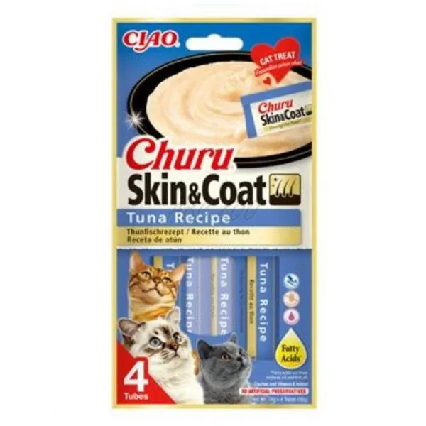 Inaba Churu Piele & Blană cu ton pentru pisici 4 x 14 g