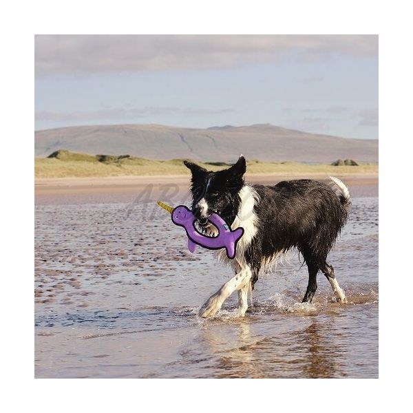Jucărie pentru câini, Beco Rough and Tough - Narval este o jucărie aspră și durabilă, care poate rezista la mestecat și la lupte în timpul jocului.Fabricată din materiale reciclate, reutilizează ceea ce există deja, oferind deșeurilor o a doua viață, încurajând în același timp colectarea și reutilizarea acestora. Are un squeeker interactiv - squeaker.