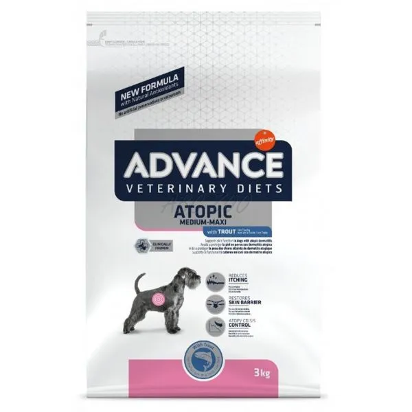 Advance este o hrană dietetică cu păstrăv, pentru câini adulți de rase medii și mari (peste 10 kg), pentru dermatită și căderea excesivă a părului și pentru a reduce intoleranța la ingrediente și nutrienți.