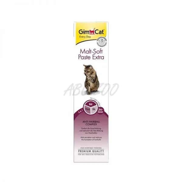 GimCat Malt Soft Extra Paste Anti hairball complex are un triplu efect - favorizează eliminarea părului mat, ajută la reducerea formării de smocuri de păr și ajută la prevenirea tulburărilor digestive.