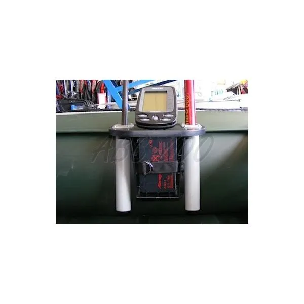 Sondaj universal și suport pentru undiță. Marele avantaj al acestui suport este asamblarea sa ușoară. Așezați suportul pe partea laterală a bărcii KOLIBRI. Suportul include, de asemenea, un suport pentru baterii pentru a furniza energie pentru sonar.