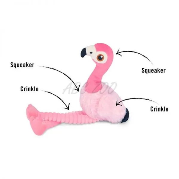 Jucărie de pluș amuzantă pentru câini în formă de flamingo.   Mai multe detalii