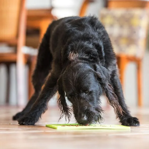 Covorașul este ideal pentru calmarea câinilor speriați, împotriva plictiselii sau ca antrenament pentru a preveni roaderea alimentelor rapide. Trebuie doar să îi aplici alimente de o consistență mai lichidă și distracția este rezolvată pentru o perioadă lungă de timp.