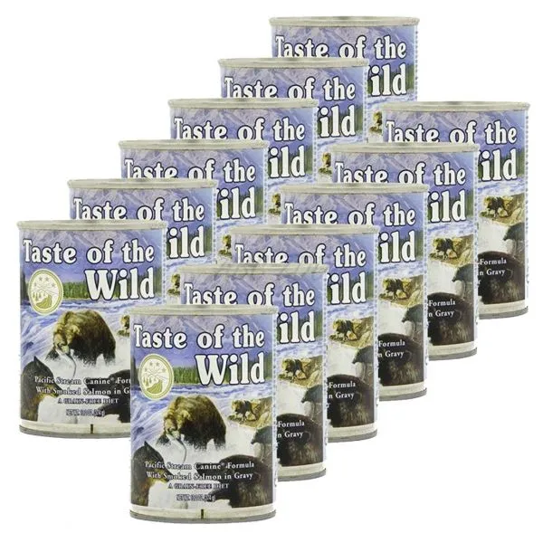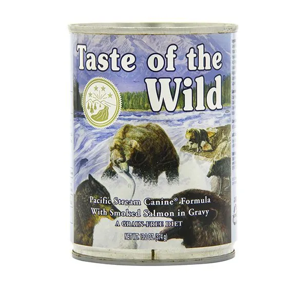 TASTE OF THE WILD Pacific Stream Canine este o conservă completă, pentru câinii de toate rasele și vârstele. Această marcă de hrană pentru câini a primit gradul cel mai înalt  de calitate de către organizația Dog Food Analysis.