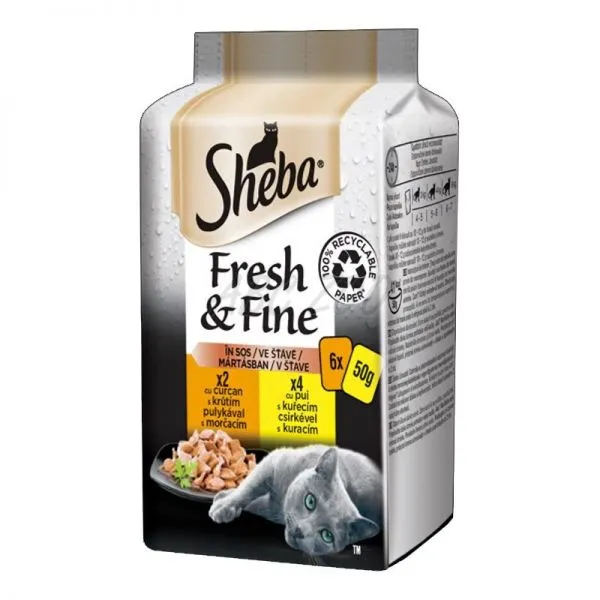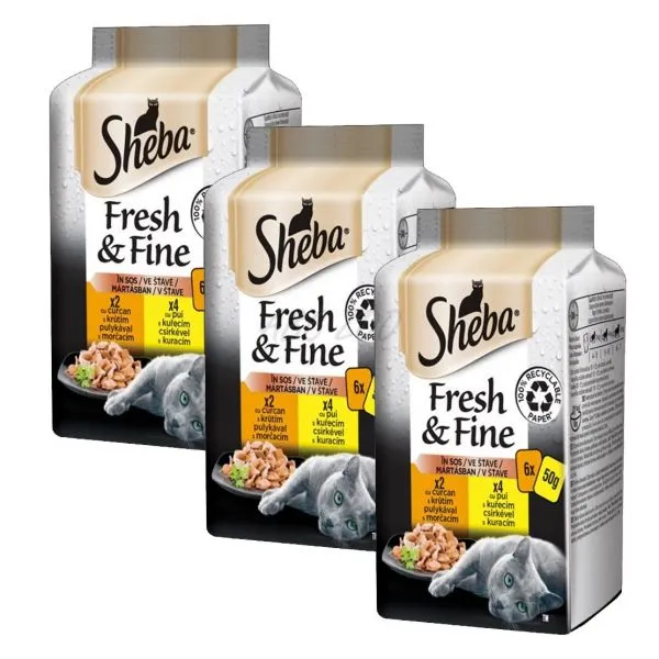 Sheba Fresh & Fine pui și curcan 3 x (6 x 50 g)