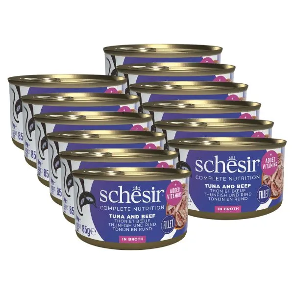 Schesir cat ton și vită cu orez în suc propiu 12 x 85 g
