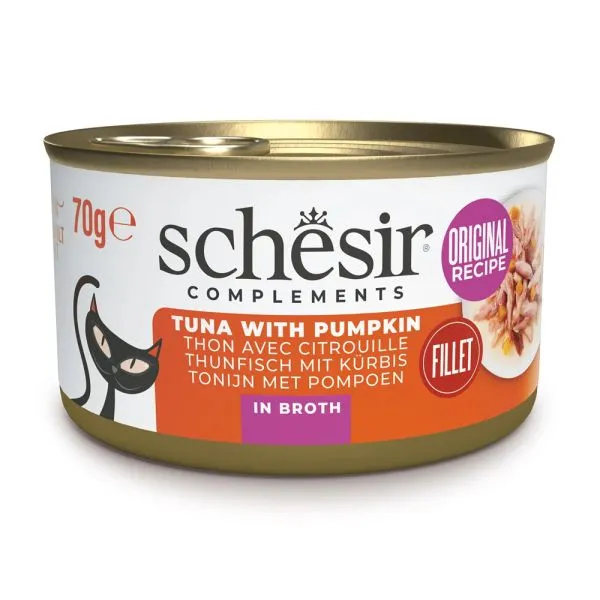 Schesir este o conservă delicioasă pentru pisici adulte, plină de ton cu dovleac în suc propriu.