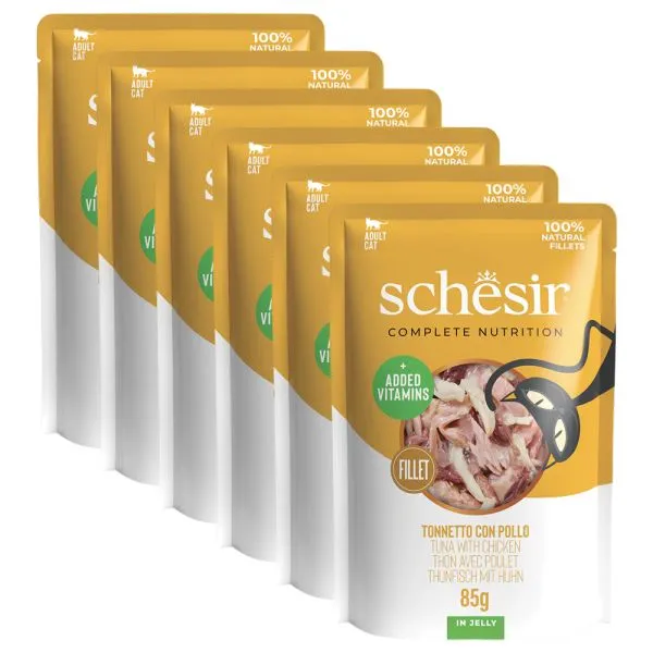 Schesir Cat ton și pui în gelatină 6 x 85 g