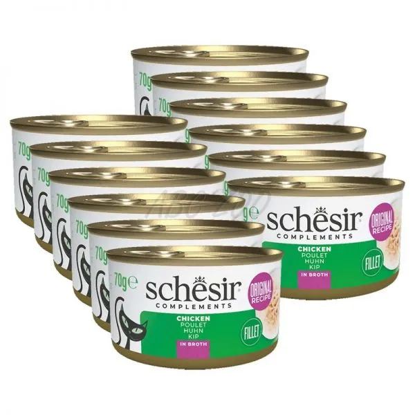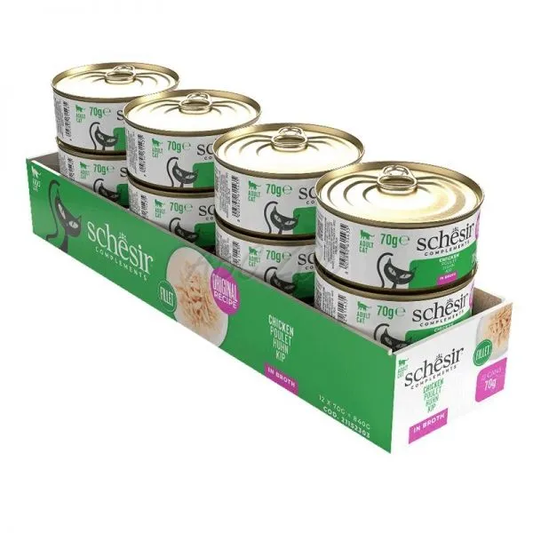 Schesir este o conservă delicioasă pentru pisici adulte, plină de pui în supă.