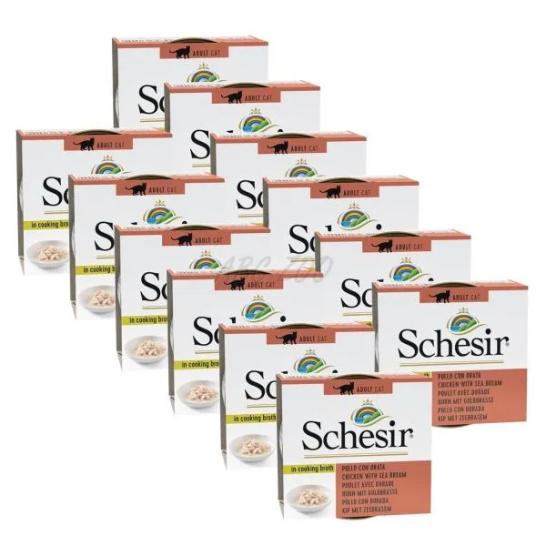 Schesir este o conservă delicioasă pentru pisici adulte, plină de pui cu dorada în supă.