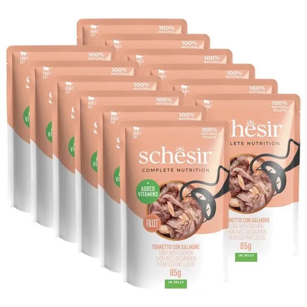 Schesir Cat - ton și somon,  este o mâncare delicioasă sub formă de bucăți întregi de ton și somon, completate cu orez sănătos.