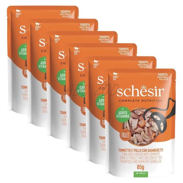 Schesir cat ton și filet de pui cu creveți 6 x 85 g