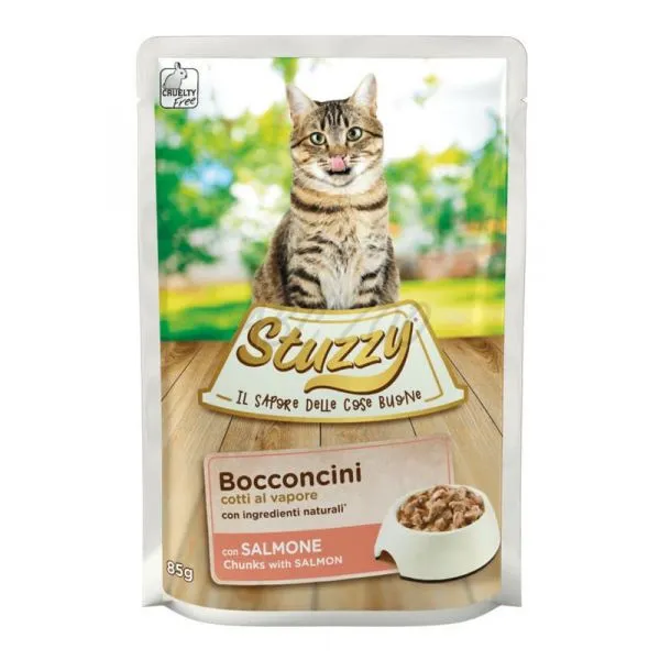 Stuzzy Cat Chunks este o hrană completă preparată prin fierbere, ceea ce o face și mai atractivă pentru pisici.
