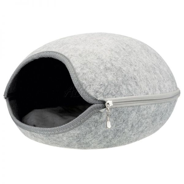 Peșteră din fetru cu fermoar pentru pisici. Mai multe detalii