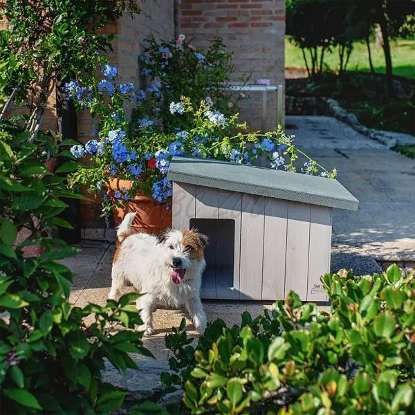 Casa din lemn pentru câini este potrivită pentru exterior și este construită pentru a rezista la condiții meteorologice nefavorabile.