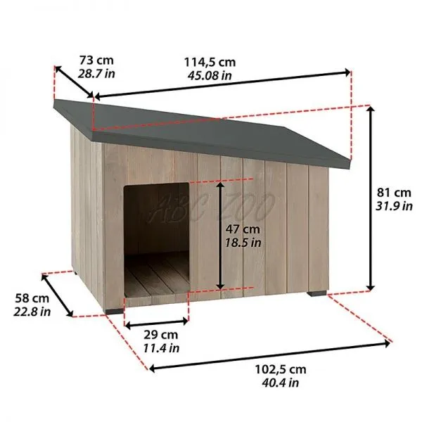 Casa din lemn pentru câini este potrivită pentru exterior și este construită pentru a rezista la condiții meteorologice nefavorabile.