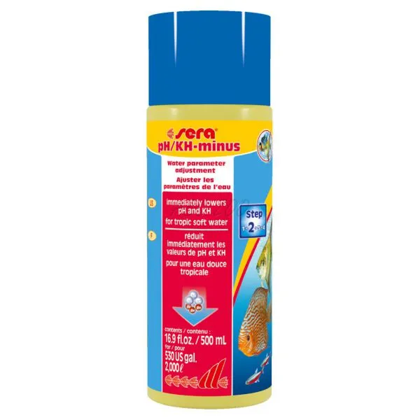 În primul rând, verificați pH-ul apei din acvariu și duritate carbonat. Rezultatele fiabile obțineţi cu Sera pH test și testul KH.a) la valori de pH peste 7,0 și peste valoarea KH de 6 ° DKH se administrează 5 ml de produs sera pH-minus în 20 de litri apa de acvariu.