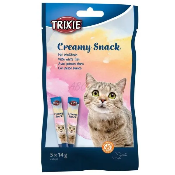 Trixie Creamy este un tratament cremos cu ton și pește alb pentru pisici.