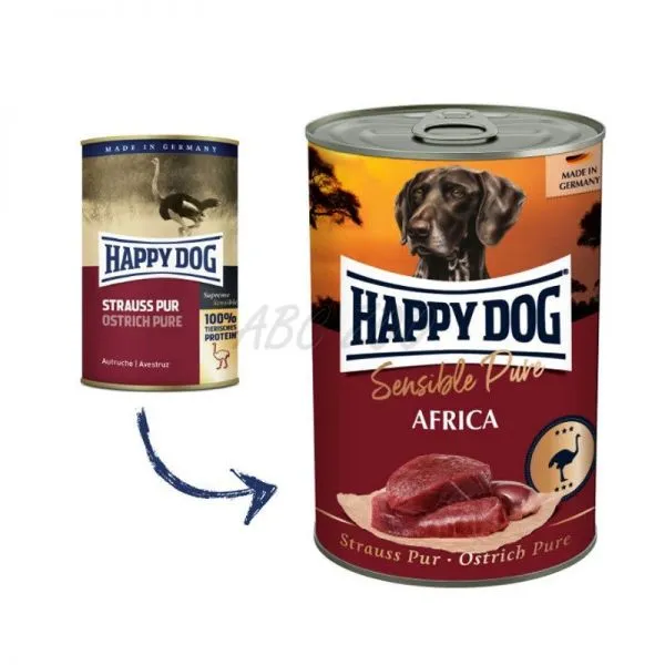 Happy Dog Pur - Strauss este o hrană completă premium pentru câini care suferă de intoleranță la hrană și alergii.