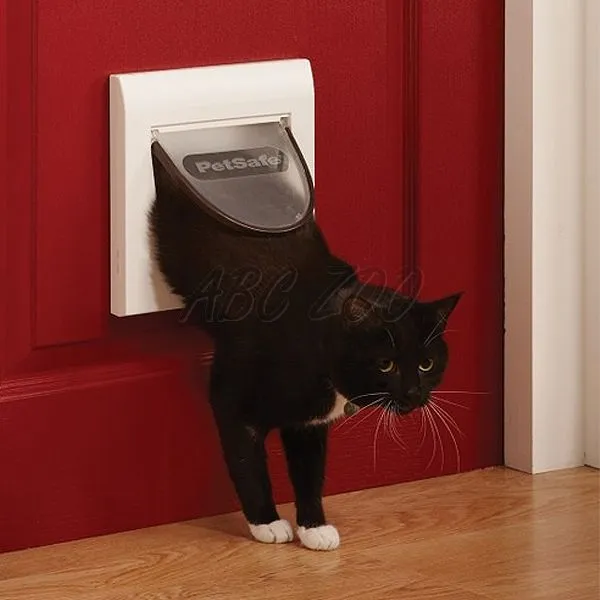Ușă albă pentru câini și pisici, cu un tunel și un sistem de blocare magnetic. Mai multe detalii