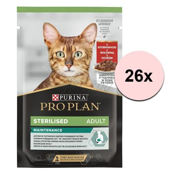 PURINA PRO PLAN CAT STERILISED MAINTENANCE de carne de vită 26 x 85 g