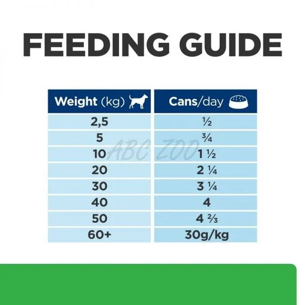 Alimentați doar cu hrana recomandată PRESCRIPTION DIET. Adresați-vă medicului veterinar pentru instrucțiuni de hrănire specifice pentru animalul dvs. de companie înainte de utilizare. Vă rugăm să consultați ambalajul pentru instrucțiuni complete de hrănire. Recomandările zilnice de hrănire sunt doar un ghid și un punct de plecare. Dacă nu sunteți sigur, consultați medicul veterinar. Apa proaspătă trebuie să fie disponibilă în permanență.