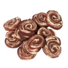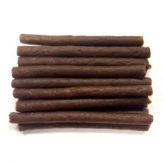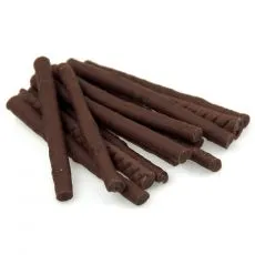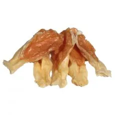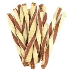 Hrană suplimentară pentru câini sub formă de batonaşe răsucite din carne de pui și carne de cod.