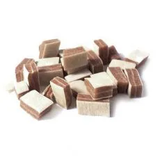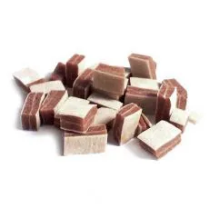 Hrană suplimentară pentru câini sub formă de bucăţi de somon de 2,5 - 3 cm.