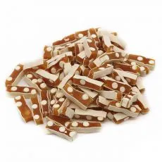 Hrană suplimentară pentru câini și pisici sub formă de fâșii mici de pui și cod.