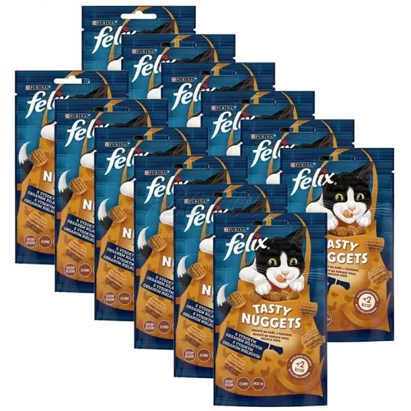 FELIX® Tasty Nuggets sunt bunătăți delicioase, bogate în proteine, cu o textură grosieră specială și fără coloranți.