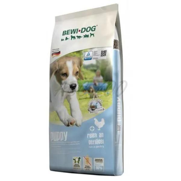 BEWI DOG PUPPY hrană completă pentru căţeluşi indiferent de rasă, până la vârsta de 4 luni şi pentru creşterea câinilor mici și mijlocii. Conținutul ridicat de proteine ajută la întărirea mușchilor, carnea de pasăre asigură digestia sănătoasă. În ansamblu, întărește sistemul imunitar.