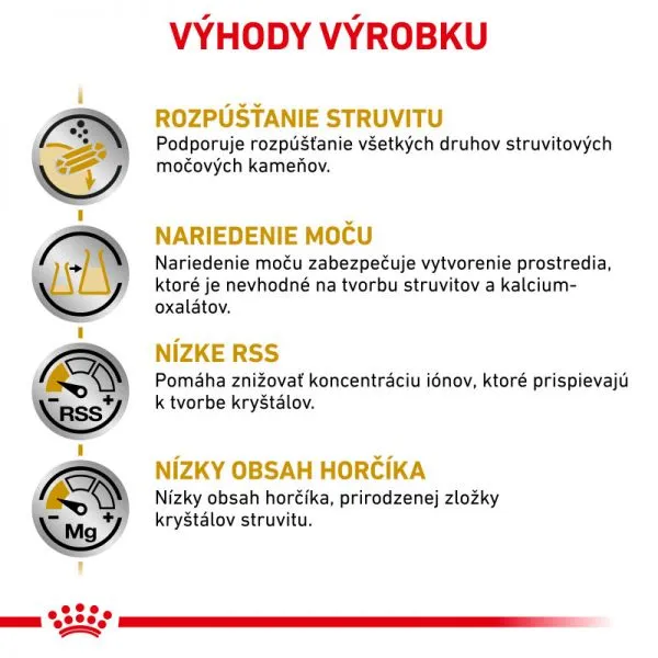 Dieta veterinară specială pentru pisicile adulte care suferă de boli ale tractului urinar. Boala tractului urinar la pisici poate duce la formarea de calculi urinari, inclusiv calculi de struvită sau de oxalat de calciu. Dieta veterinară pentru o funcționare corectă a vezicii urinare, a tubului urinar și a rinichilor este concepută pentru a ajuta la dizolvarea pietrelor urinare, la producerea de urină nesaturată și la prevenirea recidivelor.