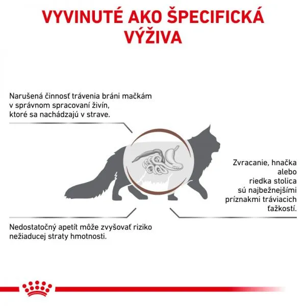 Gama de produse Cat Gastrointestinal este concepută pentru pisicile adulte care suferă de boli ale tractului digestiv.