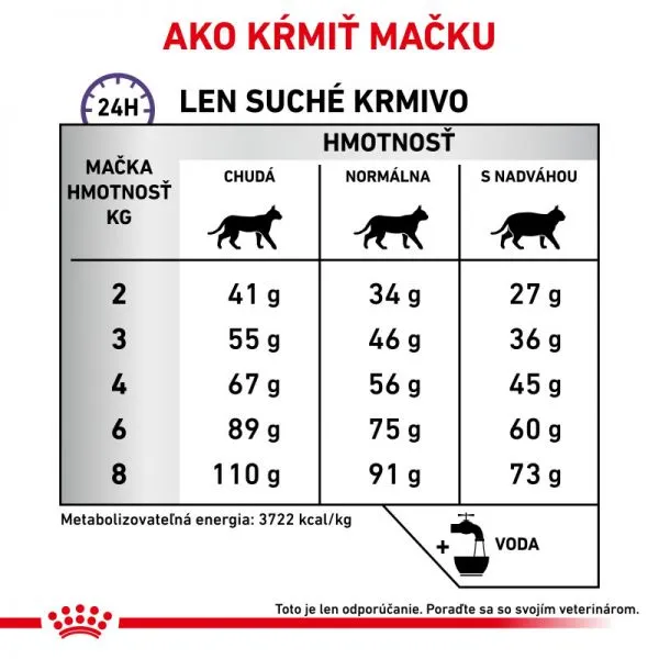 Ca parte a gamei veterinare ROYAL CANIN®, este important ca acest produs să fie administrat animalului dumneavoastră de companie numai la recomandarea unui medic veterinar. Tranziția animalului dvs. de companie de la o dietă la alta trebuie să fie un proces lin și treptat, pe parcursul a 7-10 zile. Asigurați-vă că respectați cantitatea corectă, în special în cazul alimentației mixte.