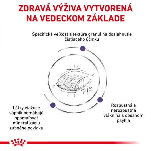Hrana pentru pisici ROYAL CANIN® DENTAL a primit denumirea VOHC: "AJUTĂ LA REGULAREA COPERIȘULUI DENTAR", deoarece este o hrană dovedită clinic că reduce în mod eficient formarea plăcii dentare.