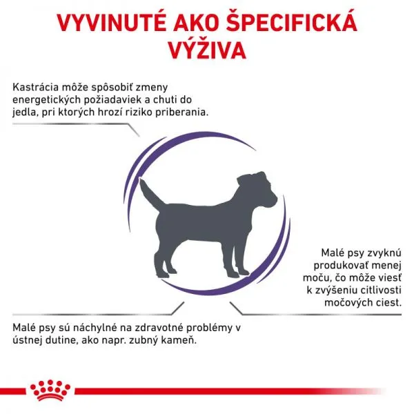 ROYAL CANIN® Neutered Adult este special formulat pentru a ajuta câinii castrați de rasă mică să își mențină greutatea optimă.