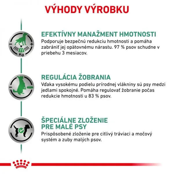 Linia de produse Dog Satiety Small este concepută pentru reducerea și menținerea greutății optime a câinelui.