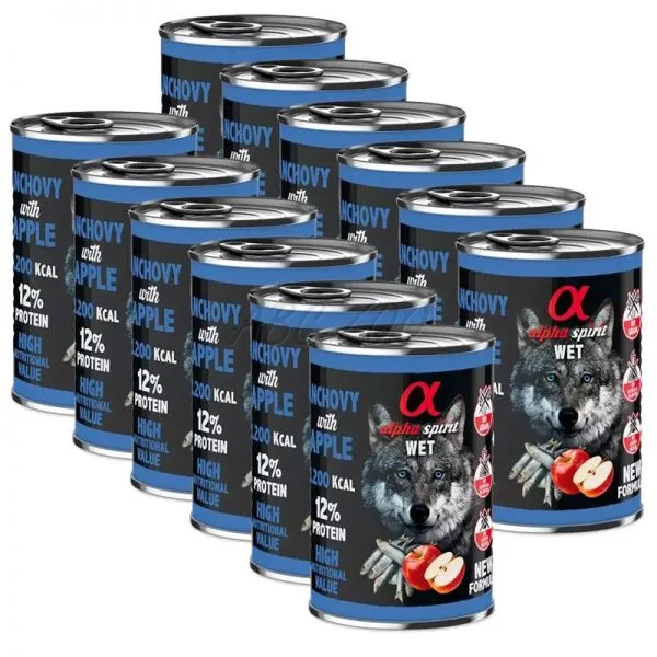 Alpha Spirit Dog Wet - Anșoa și măr roșu 12 x 400 g